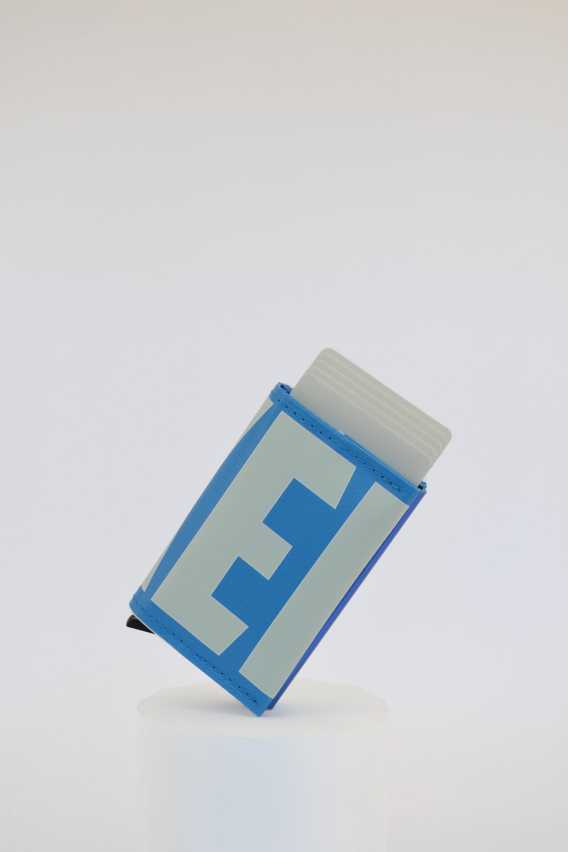 Wallet GUUS is made from upcycled festival banners, giving each piece a unique look and story. Inside, GUUS features a metal RFID-protected cardholder that holds up to seven cards, two pockets for business cards, a coin holder for a few emergency coins, and a space behind it for cash bills.