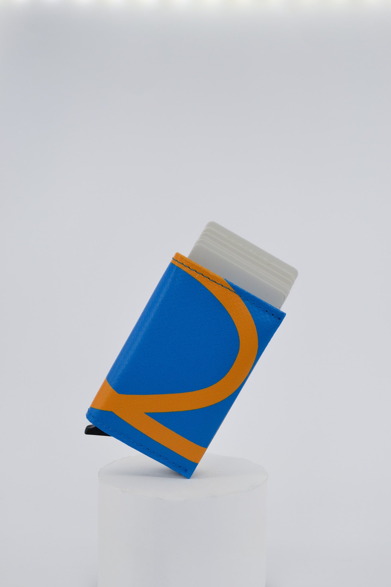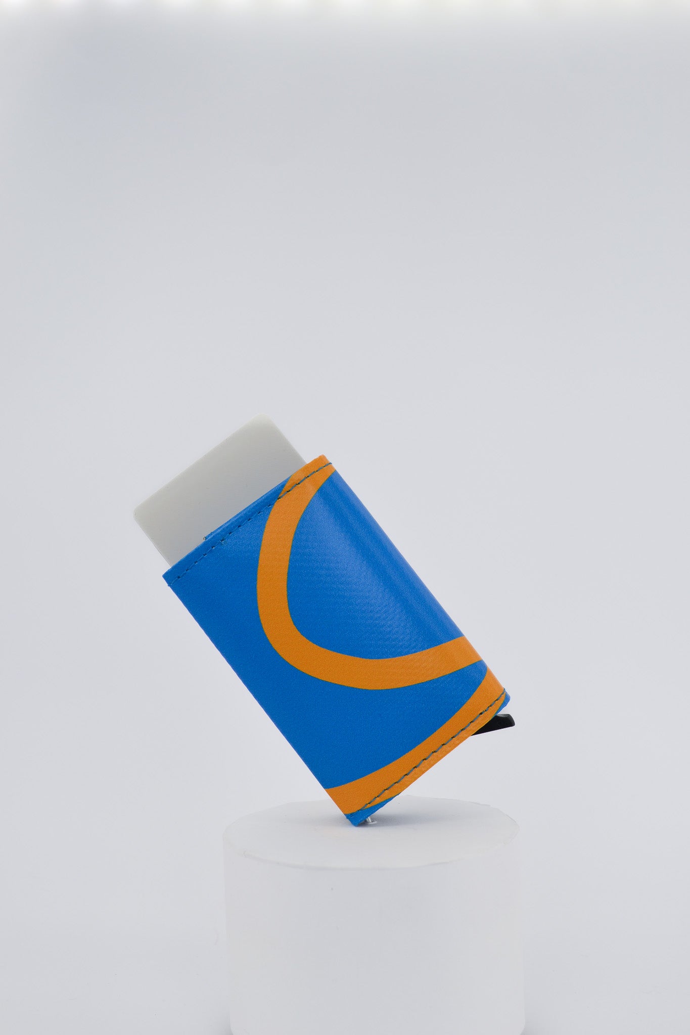 Wallet GUUS is made from upcycled festival banners, giving each piece a unique look and story. Inside, GUUS features a metal RFID-protected cardholder that holds up to seven cards, two pockets for business cards, a coin holder for a few emergency coins, and a space behind it for cash bills.