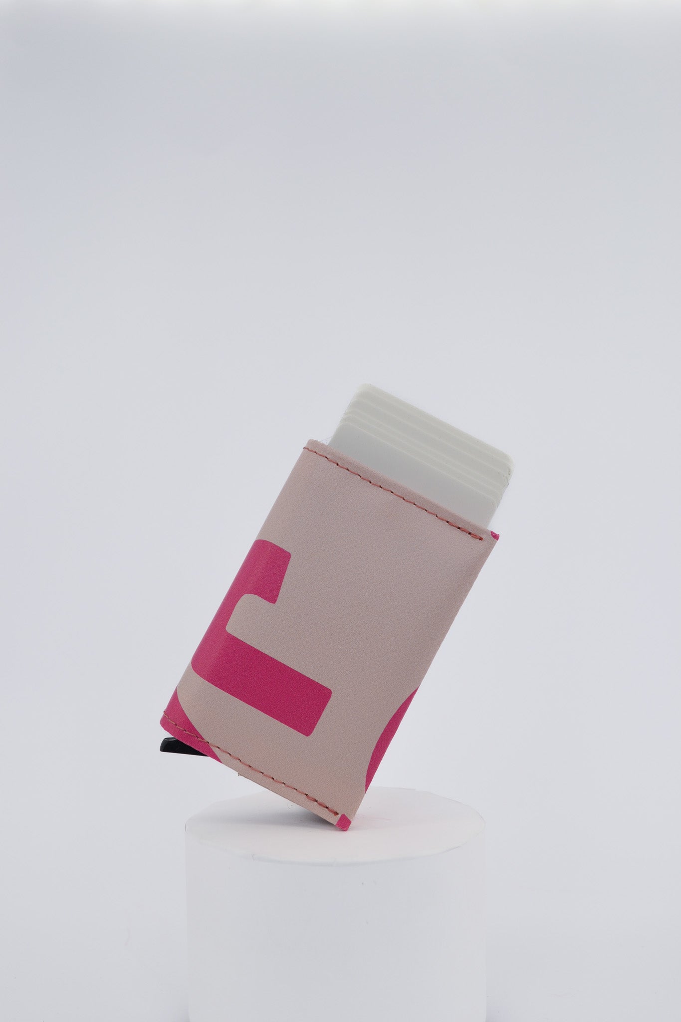 Wallet GUUS is made from upcycled festival banners, giving each piece a unique look and story. Inside, GUUS features a metal RFID-protected cardholder that holds up to seven cards, two pockets for business cards, a coin holder for a few emergency coins, and a space behind it for cash bills.